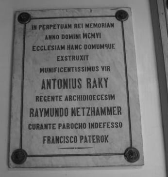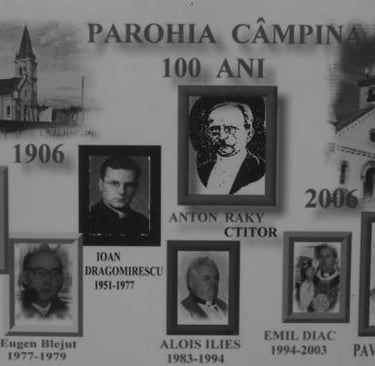 Der wohlhabende Erfinder Anton Raky ist durch Öl- und Rohstoffexplorationen zu Reichtum gelangt. Er hat in Rumänien die Fördergesellschaft Regatul Roman AG gegründet und mit den Gewinnen bereits in Bukarest ein Krankenhaus gestiftet. Er besitzt in Campina ausgedehnte Konzessionsgebiete und hat bereits hohe Investitionen in die Infrastruktur und z. B. mit Förderanlagen, Werkstätten, Straßen und eine Talbrücke bauen lassen. Sein Engagement für das Wohl der Arbeiter und der deutschen Minderheit im rumänische Ölgebiet Câmpina, veranlassen ihn im Jahr 1905, dort eine Kirche zu stiften.