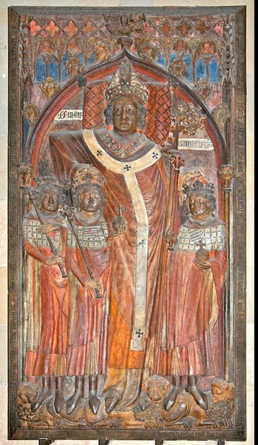 Die Grabplatte von Peter von Aspelt im Mainzer Dom dokumentiert seinen Anspruch