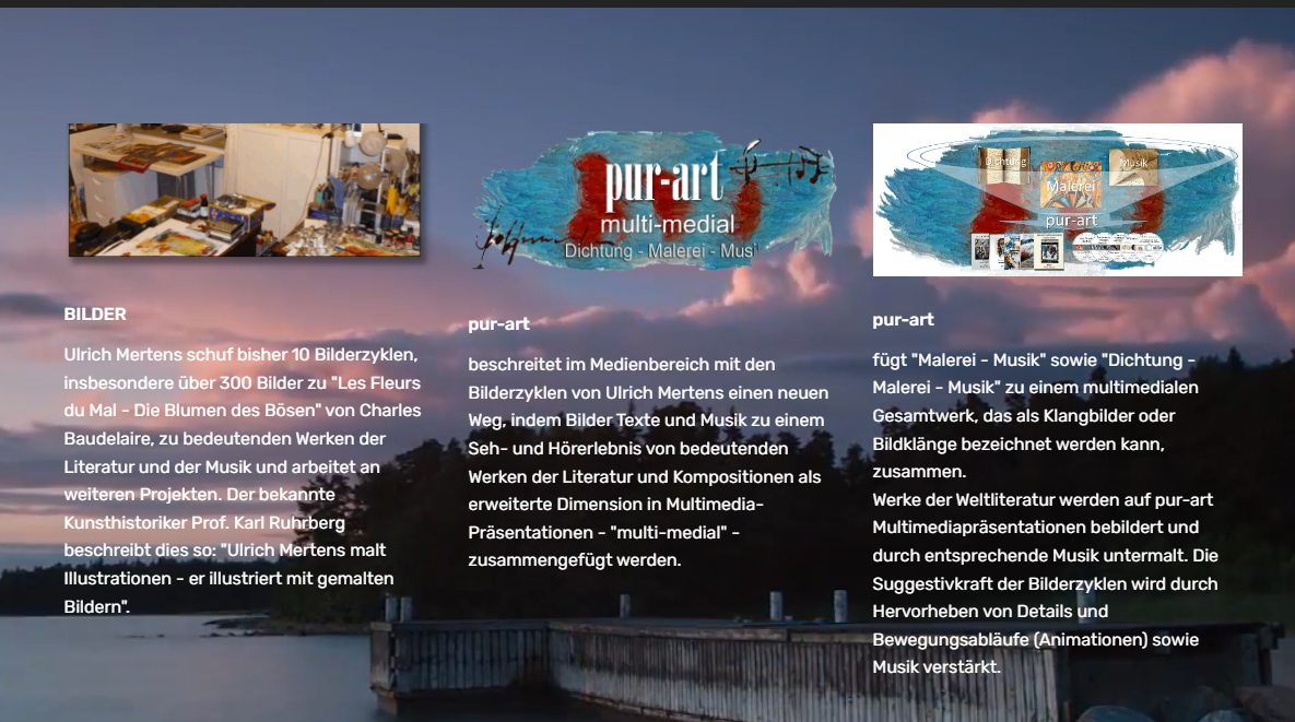 Auf der Website "Pur-Art" wurden Arbeiten von Ulrich Mertens zur Illustration europäischer Dichtung als Multimediaprojekte durch Peter Lang und Gerhard Henning präsentiert.